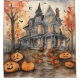 Spooky Old House surrounded by Halloween pumpkins. Great way to add some spookiness to your bathroom!