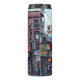 Comic book style ai illustration of downtown area of Kolkata, India architecture, motor bikes and cars. A tumbler with an illustration of busy downtown street with buildings, restaurants, shops and people on their motor bikes.
