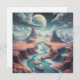 Here is a card with for those who love ai art. It includes a beautiful illustration made with ai and the prompt that goes along with it. Have fun using it! A beautiful surreal landscape with a large full moon rising over a pretty blue river. Ai art depicting a beautiful otherworldly landscape with a dreamlike quality.
