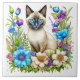 Beautiful Siamese cat with blue eyes in a patch of blue and pink flowers ai art in a watercolor style.