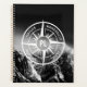 Étoile compas avec photo en noir et blanc de montagnes enneigées dramatiques avec nuages laiteux. Avec les emblèmes de la flânerie, la nature, Voyage et explorer qui sont personnalisables afin que vous puissiez écrire vos propres textes. Au centre de l'étoile se trouve un monogramme personnalisé. Parfait pour les amateurs de nature, les randonneurs et les voyageurs.