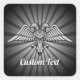 Aigle à deux têtes, symbole de puissance des empereurs byzantins. Couleur arrière - plan personnalisée. Texte personnalisé.