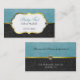 Carte de visite fait sur commande élégant, avec une damassé bleu vert et un arrière - plan noir de motif de damassé, sur l'avant et le dos de la carte. Une rayure goldtone décorative fonctionne à travers le milieu, sur l'avant et le postérieur. Un or semblant le secteur encadré des textes a de jolis graphiques des diamants ovales jaunes, de chaque côté, et du texte personnalisable prêt à personnaliser pour vos affaires.