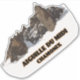 Stylised design of the spectacular Aiguille du Midi (3,842 m / 12,605 ft) which is a mountain in the Mont Blanc massif within the French Alps, towering above Chamonix. It can be visited by taking a breathtaking (literally) cable car ride from the town below. Souvenir sticker for those who dared!