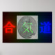 Glowing Aikido in Kanji with a stone-carved image of Ueshiba O-Sensei.