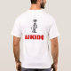 AIKIDO TSHIRT - FOR THE MARTIAL ARTIST Aikido The Japanese word Aikido is written in three characters: Ai (harmony), Ki (spirit or energy), Do (the path or way). Roughly translated Aikido means "the way of the spirit of harmony. The way of harmony with the universe." What is Aikido? Aikido is a true budo, or Martial Way that evolved in the historic tradition of Japanese warrior arts. Aikido often described as "moving Zen", is a martial art that focuses on effectiveness against attack as well as harmony of spirit and is sometimes called the "gentle martial art." Aikido is known for its graceful techniques and swift effortless movements that fling an attacker through the air or immobilize and control him with subtle pressure applied as joint locks. Aikido movements are greatly influenced by the sword, stick and spear. The techniques are very fluid circular movements that blend and harmonize with the attack rather than confronting it thus turning an aggressive linear attach into a circular motion that renders attackers helpless. The aim of Aikido is not to harm an attacker, but to blend with and capture an opponent's aggressive actions and neutralize them. Properly executed, Aikido techniques convince an attacker that violence will not work. Studied in earnest, Aikido is more than a science of tactics and self-defence: it is a discipline for perfecting the spirit.
