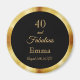 Elegant, classic, and simple 40 and fabulous birthday sticker. Chic classic black background color with a faux gold frame. The text: 40 and fabulous. Templates for her name and a date. Date of birth or the date of the party. Golden letters. Perfect for party favors or as a save the date reminder for your guests.