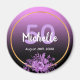 Magnifique aimant pour un 50e anniversaire avec un noir et rose élégant et moderne, dégradé de violet, fond ombré. Avec un cadre doré faux, et des fleurs aquarellées de couleur violet et pourpre. Modèles pour nom, âge et date, lettres blanches et violettes. Parfait comme souvenir ou comme rappel de sauvegarde de la date pour vos invités.
