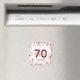 Un aimant pour une fête de 70e anniversaire, comme une faveur ou enregistrer le rappel de date pour vos invités. Branches aux fleurs de magnolia rose, violet et doré. Arrière - plan blanc élégant. Modèles pour un nom, 70 ans et une date. Date de naissance ou date de la fête/anniversaire. Lettres dorées et bordeaux. Le nom est écrit avec un script de style moderne écrit à la main.