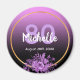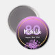 Aimant glamour pour un 80ème anniversaire avec élégant et moderne noir et rose, dégradé violet, fond sombre. Avec un cadre en faux or, et des fleurs à l'eau couleur violet et violet. Modèles pour nom, âge et date, lettres blanches et violettes. Parfait pour garder ou enregistrer le rappel de date pour vos invités.