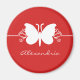 Aimant à papillon doux et simple avec une jolie silhouette de papillon et une bordure tourbillonnante délicatement élégante. Cet aimable aimant frigo est une excellente façon de coller des notes importantes, surtout lorsqu'il est customisé avec votre nom ou un autre texte personnalisé! Il vous suffit d'ajouter votre propre texte dans les espaces prévus ou de cliquer sur le bouton "Customiser" pour modifier les polices, les couleurs du texte ou ajouter/supprimer du texte.