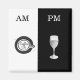 Divisé en deux parties égales pour le matin et le soir. Matin blanc avec illustrations noires et script personnalisé et soir noir avec illustrations blanches et script personnalisé.