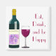 Aimant carré mignon avec des graphismes d'une bouteille de vin et verre de vin avec lecture de texte rouge, Mange, Boire, et être heureux. Petite idée cadeau, qui n'aime pas les magnets de réfrigérateur.
