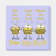 On voit trois abeilles dessinées de façon sidérante... l'une couvre ses yeux, l'autre couvre ses oreilles et la seconde, sa bouche, sur la base du familier, ne voit aucun mal, n'entend aucun mal et ne parle aucun mal. Ce mot est légende : "n'ayez pas de mal". Design original par Christie Black de Creations from the Heart.