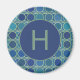 Aimant Abstract Shades of Blue Circle Pattern Monogram