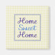 Home Sweet Home design typographique scénarisé avec un cadre illustratif croisé en cyan et bleu foncé sur un arrière - plan en vichy jaune.