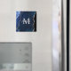 Cet aimant dispose d'un élégant et glamour arrière - plan en marbre d'agate avec des détails de gemstone de géode et des accents de parties scintillant faux argent. Le monogramme combine écriture manuscrite et polices sans serif modernes pour un look élégant et sophistiqué. Cela fera le cadeau idéal car il peut être customisé avec un nom et une initiale. Les teintes bleues foncées le rendent parfait pour l'automne et l'hiver.