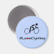 C'est un aimant amusant pour un cycliste passionné, qui représente un pictogramme d'un cycliste unique et le mot-clic #LoveCycling. L'arrière - plan est bleu clair, et le "V" de l'Amour a été transformé en coeur rouge.