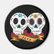 Heureux et amoureux, ces crânes de sucre reposent sur une bannière qui dit "Amor". Ils vous mettront une petite odeur sur le visage toute l'année, et la couleur arrière - plan est personnalisable !