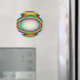 Cet aimant présente un motif multicolore aux couleurs psychédéliques vives entourant une structure centrale en forme d'oeuf. Il ressemble à un imaginaire d'un vaisseau spatial alien prêt à enlever un tremblement de terre.