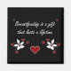 Cet aimant présente du texte blanc lire Allaitement est un cadeau qui dure toute une vie décoré de coeurs et de fleurs sur un arrière - plan noir.