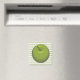 Ce design présente une pomme verte brillante sur un arrière - plan vert sauge à rayures horizontales.