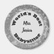 Mettez un sourire sur le visage de votre baby-sitter pendant les vacances ou à la fin d'un été avec vos enfants. Cet aimant peu coûteux est orné d'un arrière - plan blanc et argenté. Un cercle rond de couleur solide fournit l'arrière - plan de "World's Best Babysitter" et le nom de votre baby-sitter qui peut facilement être personnalisé.