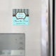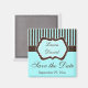 Ce bleu aqua, brun et blanc rayé enregistrer la date de l'aimant correspond au faire-part de mariage ci-dessous. Le texte est entièrement personnalisable.