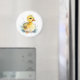 Un mignon aimant rond avec une illustration d'aquarelle de canard bébé.