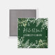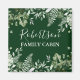 Nom de famille Cabine Aquarelle Botanique Verdure Réfrigérateur Magnet comprend des feuilles de lierre, de fougères et de sauge. Arrière - plan vert forestier.