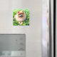 Aimant frigo avec un adorable chien poméranien orange posant un champ de trèfle avec quelques shamrocks. Un joli cadeau de la Saint Patrick pour les propriétaires et amateurs de pom de Poméranie.