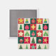 Arbres, ornements et étoiles sur des carrés rouges, verts et écrus créent un aimant mignon et amusant avec une esthétique du milieu du siècle. Fait une petite farce parfaite.