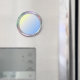 Aimant "Chrome plaqué métal" pour texte, logo, image. Cercle bleu/jaune pâle.