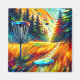 Coloré disque abstrait de golf à thème ai art Oiseau volant dans le ciel, grands pins, couleurs d'automne et disques volant partout vers une broche de golf à disque.