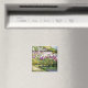 Belle reproduction de verre de Tiffany. Un Jardin d'Eau avec des Fleurs Iris sauvages et des feuilles dans un étang, sont sur ce Aimant en Verre Tiré.