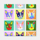 Boston Terrier chiens pop art style dans plusieurs couleurs vives. Couleurs vert, rouge, jaune, rose, bleu, bleu clair et orange. Sympa et coloré pour les fans ou les amoureux de les chiens de Boston Terrier!