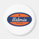 Design de signalisation ovale avec les quartiers de New York. Couleurs officielles orange et bleu de NYC. Quartier d'Astoria dans le Queens. Avec les quartiers de Queens de : Astoria, Auburndale, Bayside, Corona, Ditmars, Elmhurst, Floral Park, Flushing, Forest Hills, Hollis, Jackson Heights, Jamaïque, Long Island City, Middle Village, Ozone Park, Rego Park, Richmond Hill, Rockaway, Woodhaven
