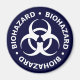 Aimant bleu foncé avec un symbole de danger biologique blanc et un texte d'avertissement.