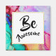 Aimant avec le texte : Soyez génial écrit à l'intérieur d'un cadre blanc avec une fausse bordure de feuille d'or. L'arrière - plan est un design abstrait artistique sophistiqué. Peinture aquarelle avec les couleurs mélangeant et mélangeant créant un beau look de marbre à couches fluides.