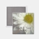 Le joli Magnet Mariage de la marguerite blanche douce peut être personnalisé avec les noms de la mariée et du marié et la date de la cérémonie de mariage spécifique pour créer un Magnet Save the Date, un cadeau de conservation ou la faveur de la fête. Cet élégant aimant à mariage floral personnalisé présente une photo botanique douce à gros plan à exposition multiple d'une fleur de marguerite blanche avec un centre jaune et un arrière - plan gris.