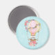 Un aimant au design adorable avec une illustration aquarelle. Une montgolfière ornée de jolies fleurs rouges et roses. Un mignon petit ours blanc est assis dans le panier. Arrière - plan bleu clair.