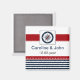 Bandes bleu marine et blanc avec bordure rouge et bordure blanche pointillée avec compas, mariage nautique Mod enregistrer la date aimant favors. Produits correspondants également disponibles.