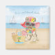 Summer Paws IV par Beth Grove. Un chien prêt à la plage porte un chapeau de soleil, des lunettes de soleil et un collier de fleurs assis dans le sable. Inclut également l'expression "être un vrai bébé de plage" | SID23583A