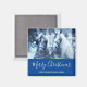Un joyeux aimant de Noël avec une photo d'une paire de chevaux cognés ensemble. Un jour enneigé et un filtre bleu créent une scène magique.