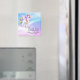 Un aimant de faveur avec l'image d'une licorne aux grands yeux bleus, ailes roses et crinière arc-en-ciel et queue. Kawaii mignon.