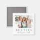 Ce simple et élégant aimant photo carré d'inspiration boho est une belle façon de célébrer l'amitié pendant les vacances. L'avant offre de l'espace pour une photo préférée, avec "Besties" en dessous dans une police serif classique, et du texte en script souple pour ajouter vos noms ou un court message. Conçu avec un arrière - plan blanc propre et un texte gris doux, il a un look intemporel qui fonctionne avec n'importe quel décor, que ce soit sur un réfrigérateur, un casier ou une carte magnétique. Le dos est une surface magnétique lisse, et l'année peut être ajoutée pour une touche personnalisée qui marque le moment dans le temps. Toutes les polices, les couleurs et le placement de photo peuvent être customisés. Un cadeau de vacances bien pensé et personnel pour votre meilleur ami.