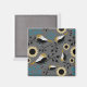 Motif tendance avec oiseaux, fleurs, branches avec baies sur gris. Un aimant à arrière - plan gris avec des oiseaux dorés et noirs, des accents turquoises et des fleurs en motif d'art stylisé. Design de l'Emporium de Jenn.