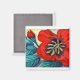 Big Red est une peinture mixte d'un hibiscus sur un aimant carré.