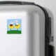Sur ce mignon aimant, une bourde agacée est assise sur une fleur jaune et demande : "Pourquoi m'embêtez-vous, dame ?" à laquelle répond le coccinelle assis sur une autre fleur, "Bee-parce que vous êtes mignonne". D'après mon image numériquement originale.
