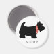Cet aimant présente un joli terrier écossais noir portant un bandana rouge et blanc. Le texte ci-dessous indique "Scottie" et peut être personnalisé avec le nom de votre propre chien. Parfait pour les amoureux de les chiens de tous âges ! Conçu par l'artiste © Tim Coffey.